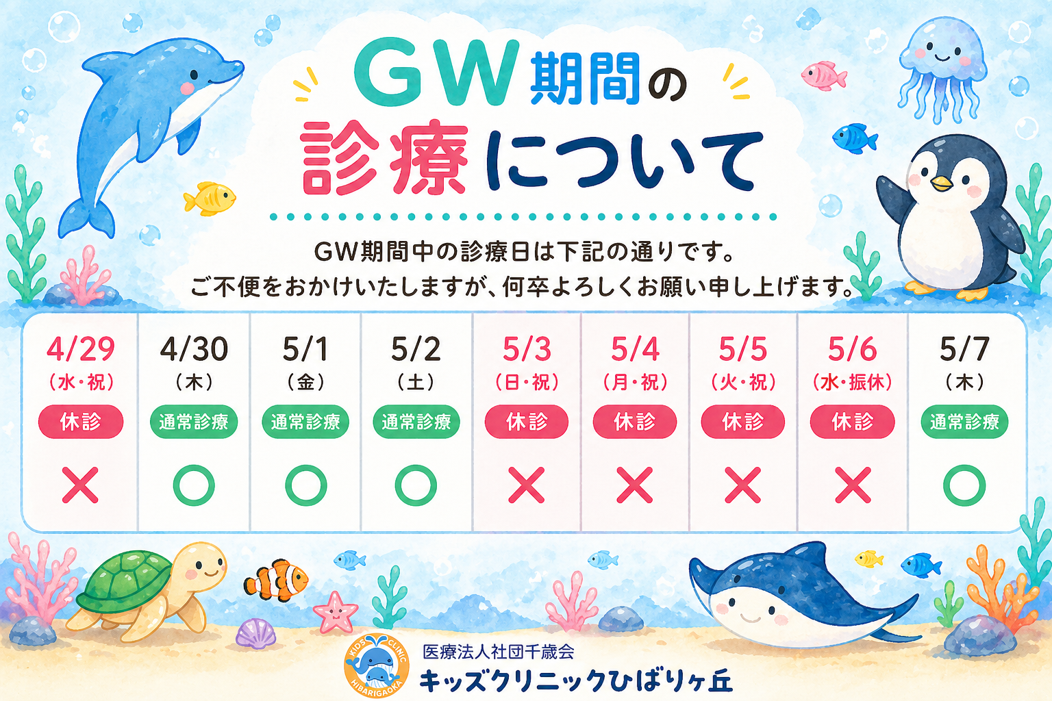 GW期間の診療について🎏